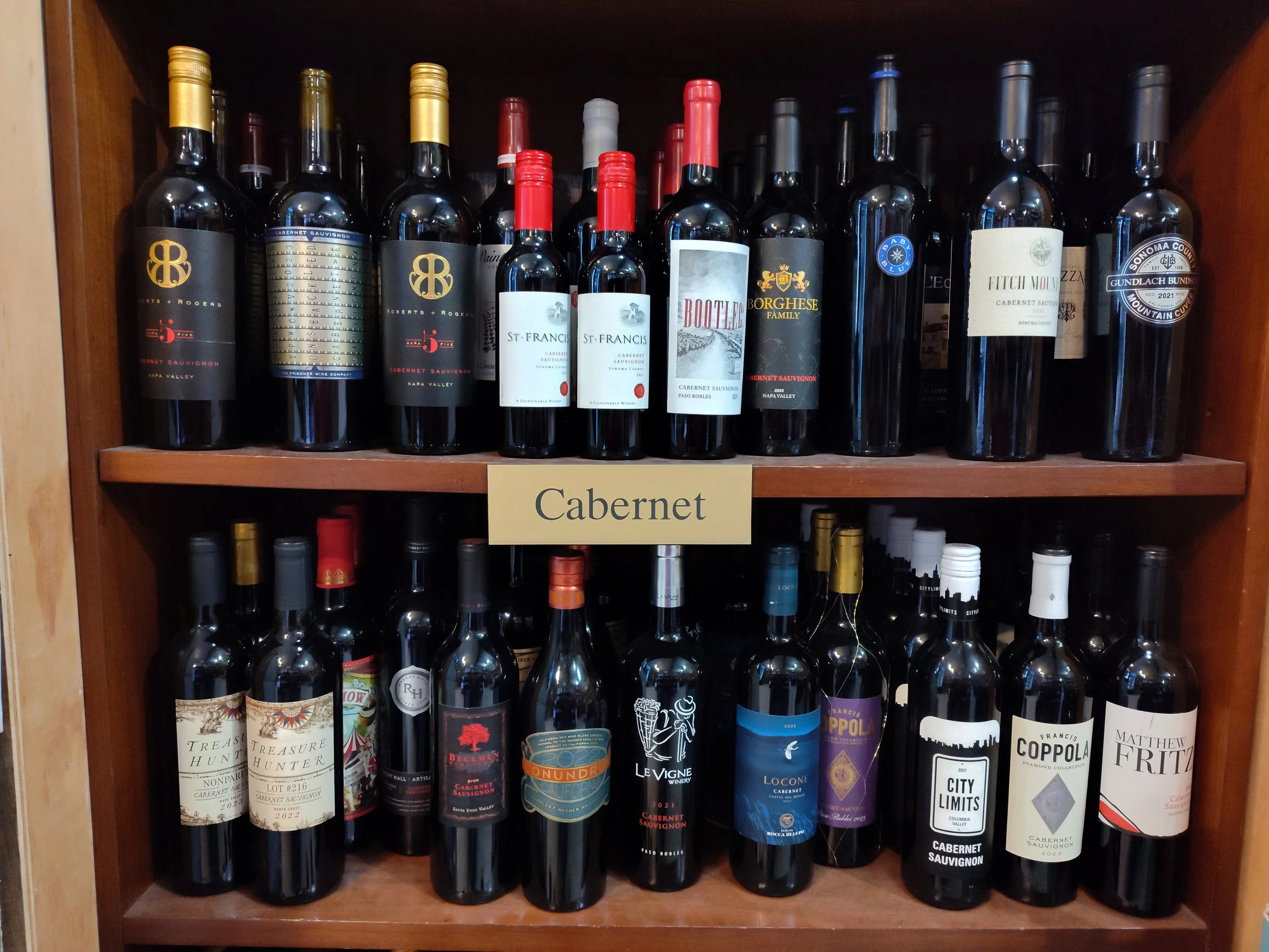 We have several Cabernet Sauvignons labels in addition to all sorts of varietals to chose from such as Pinot Noir, Cab Franc, Zinfandel, Merlot, and Blends