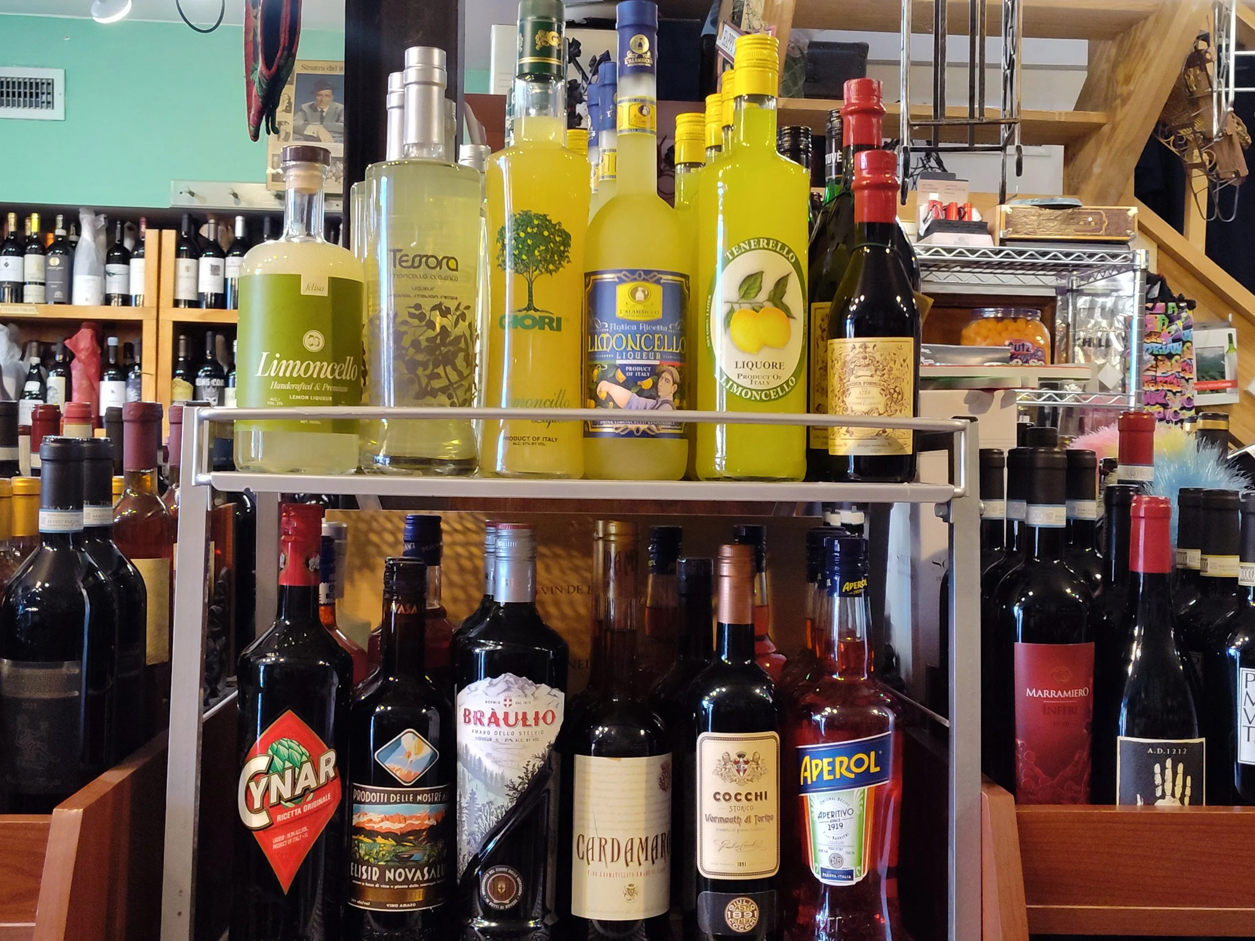 Let’s start with the most popular - Limoncello, we have both clear and cream. In addition to the standard aperitifs, we also have cream liqueurs such as pistachio, chocolate and hazelnut. But be warn, these bottle sell fast.