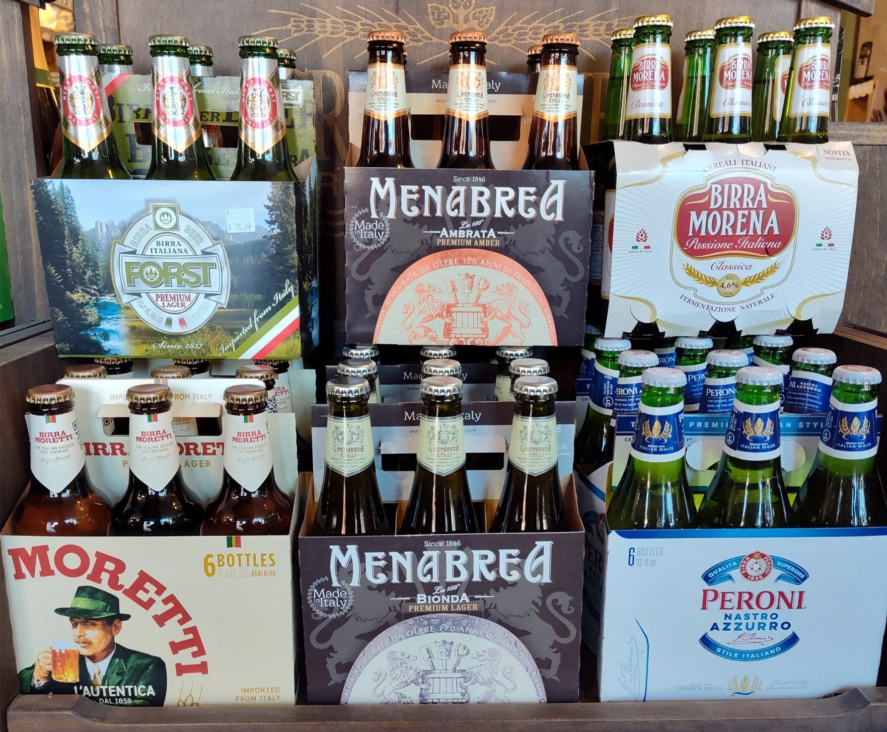 Italy is represented by many quality beers such as: Peroni, Moretti, and Menabrea.