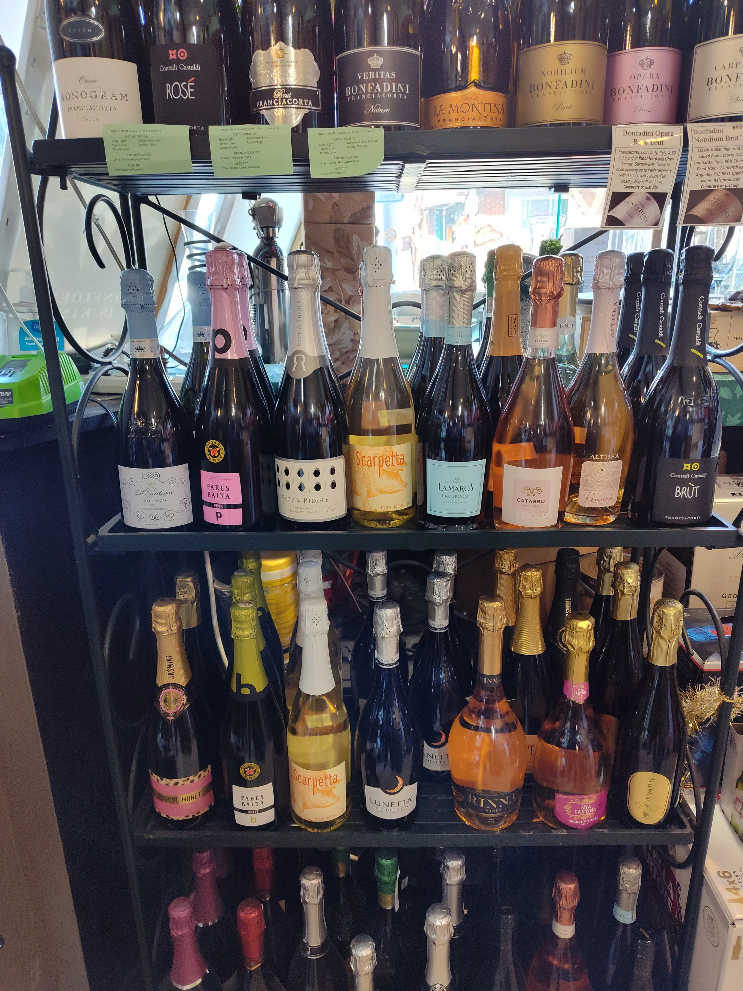 Instead of Champagne, try some great tasting Italian bubbly. We have a large selection of Prosecco as well as dry to brut Bonfafini label Franciacorta.